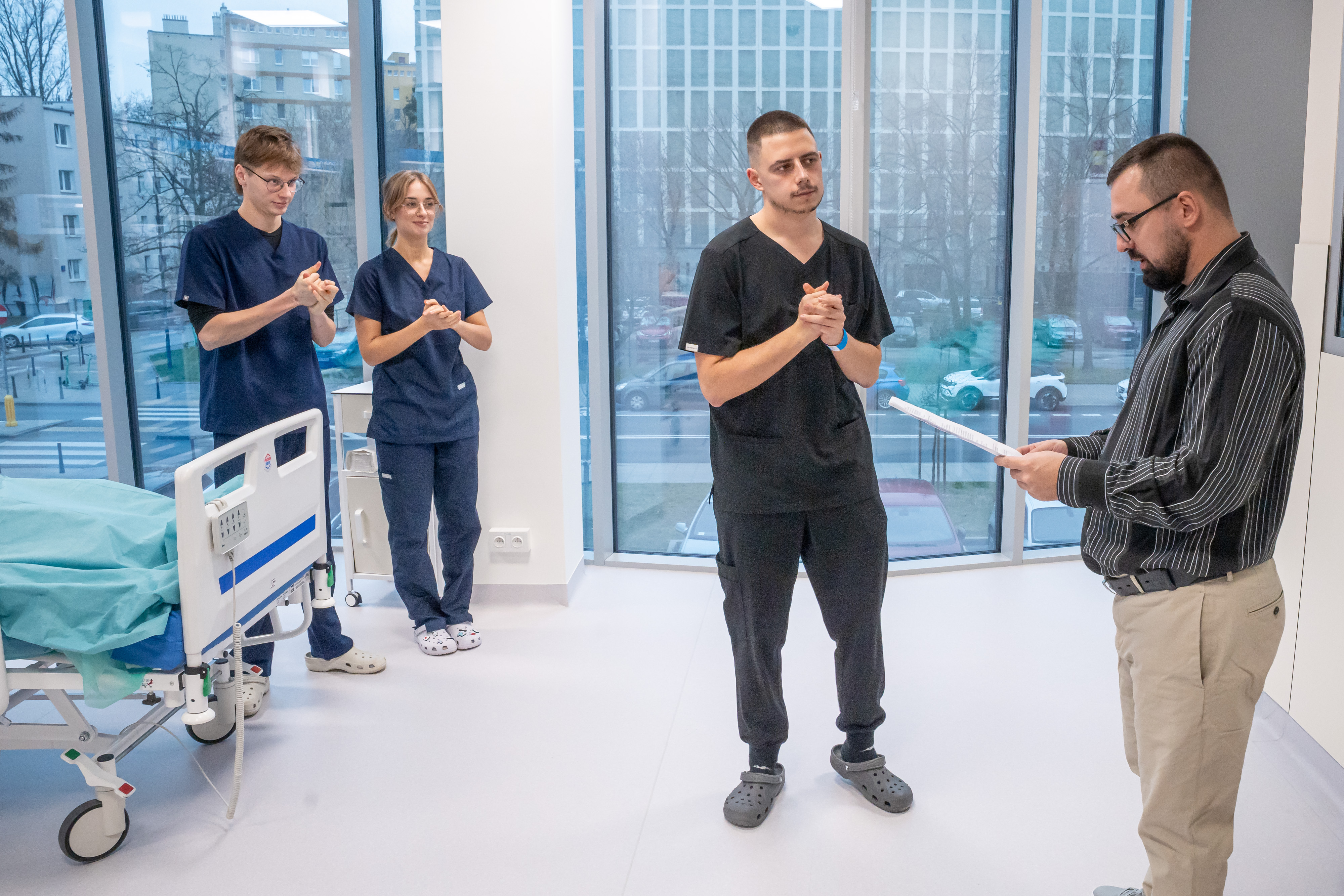 Etap praktyczny Olimpiady umożliwił uczestnikom zaprezentowanie swoich umiejętności w realistycznych warunkach, przygotowując ich do efektywnego i profesjonalnego działania w pracy klinicznej.