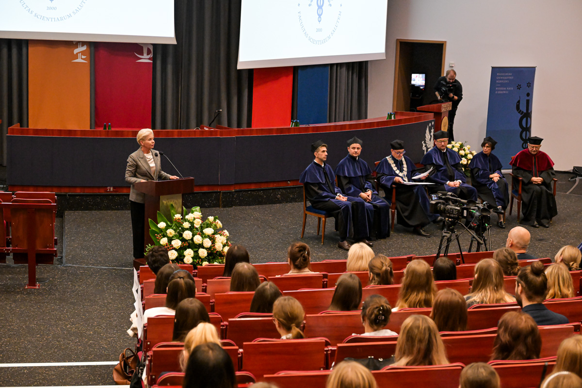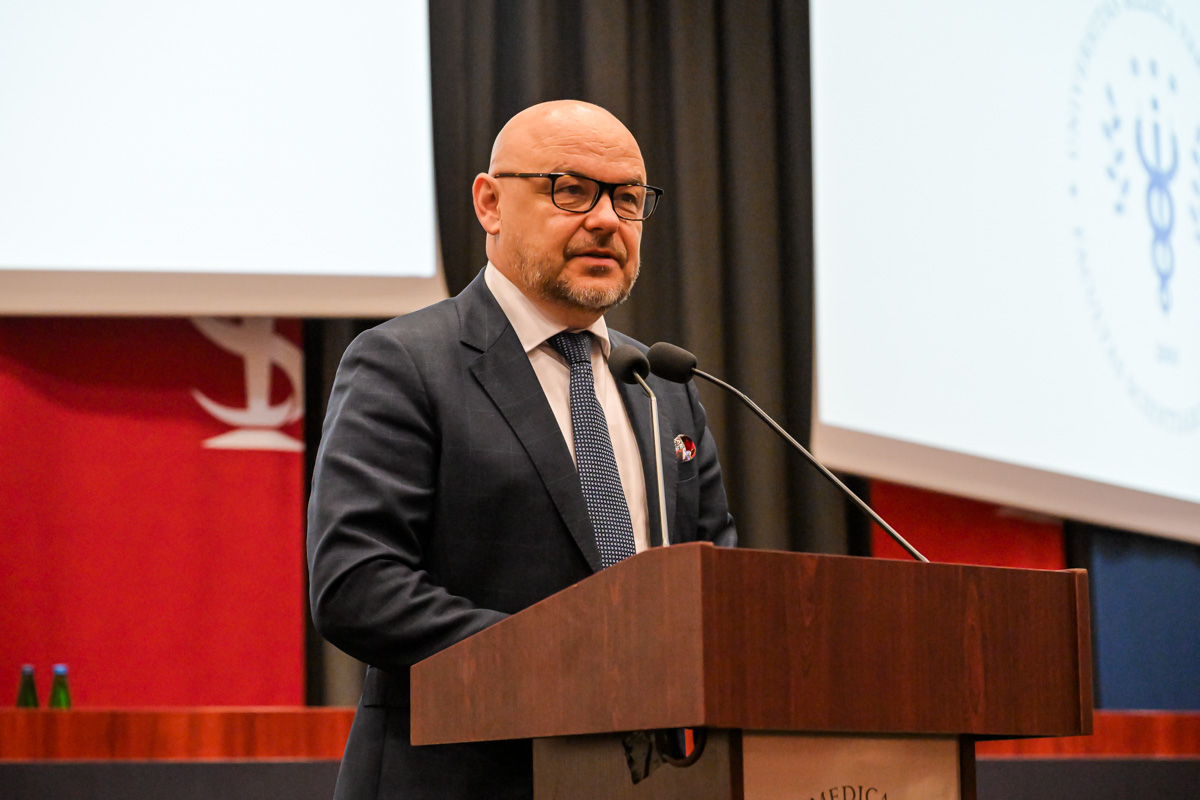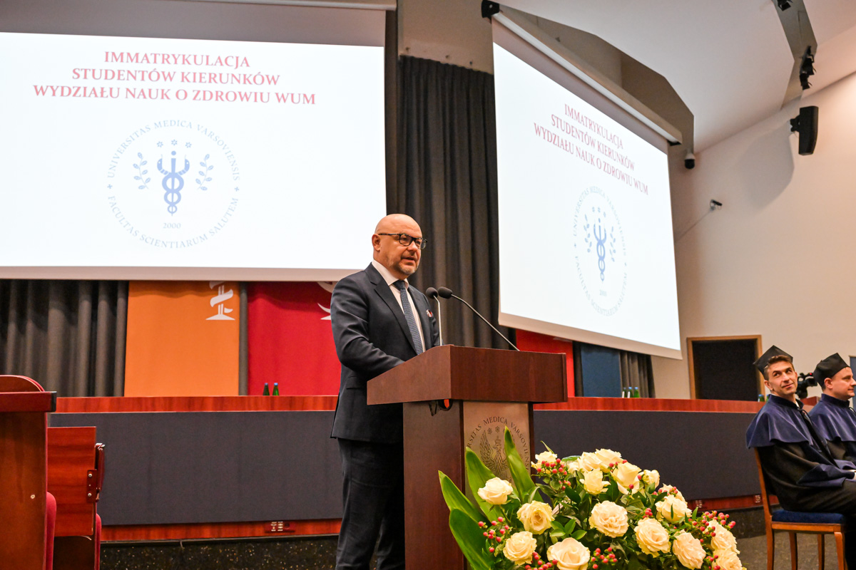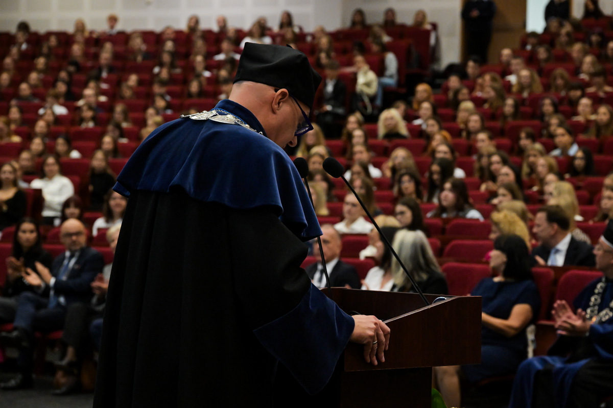 Na zakończenie swojego przemówienia Pan Dziekan zwrócił uwagę, że wstąpienie w poczet studentów WUM to nie tylko wybór kierunku studiów, ale również wyzwanie by stawać się lepszym człowiekiem. Zwrócił się do studentów słowami: „(…) Bądźmy razem odważni i zmieniajmy świat z mądrością, godnością oraz zawsze otwartym sercem, otwartym na drugiego człowieka”.