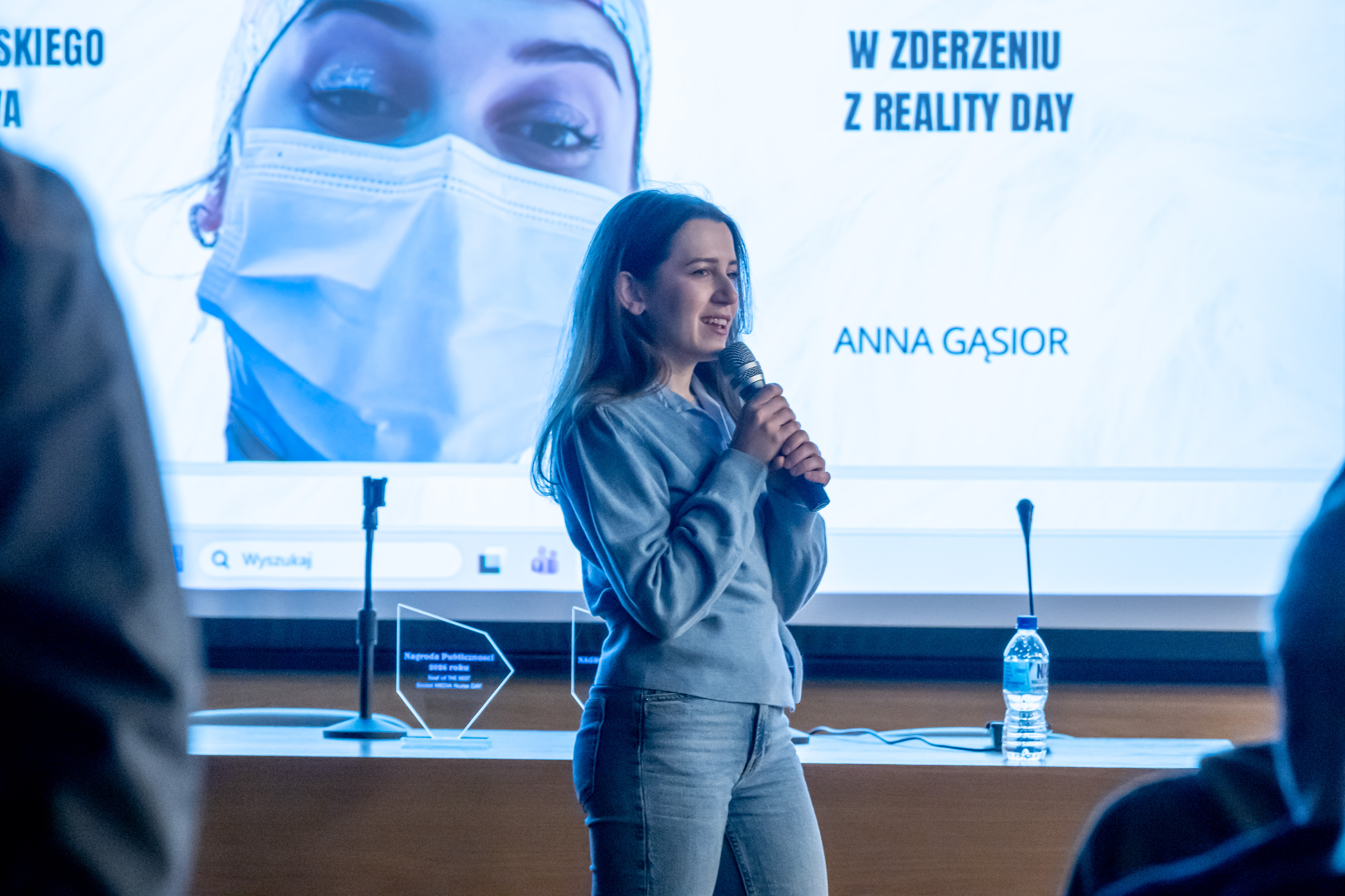 Anna Gąsior zaprezentowała temat związany z budowaniem wartości ideałów wśród Żaków Polskiego Pielęgniarstwa w zderzeniu z REALITY DAY/NURSEGRAM.COM.
